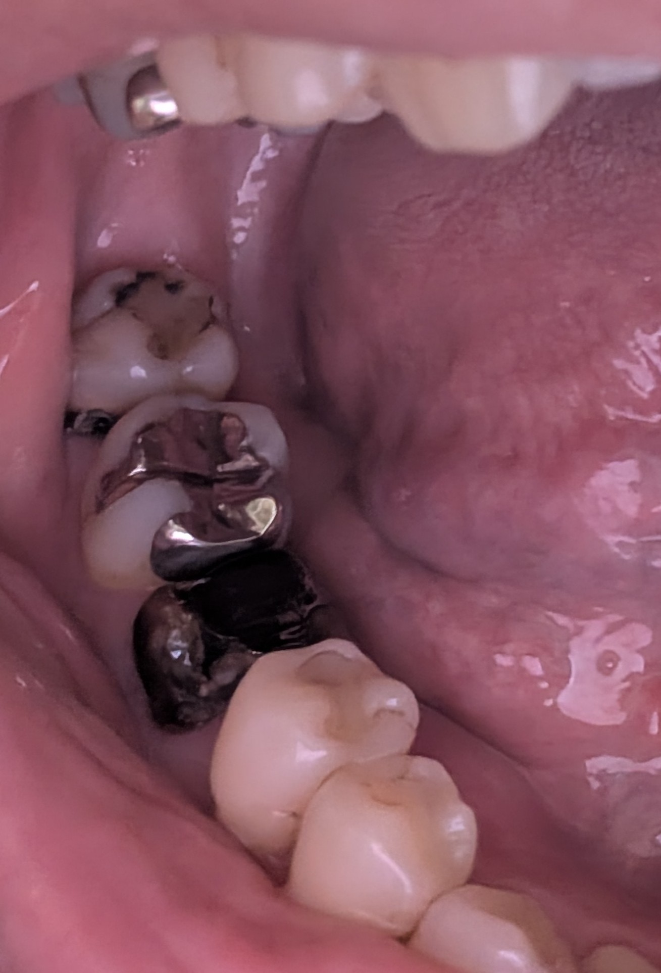 虫歯がとても多く、治療痕も多いです。