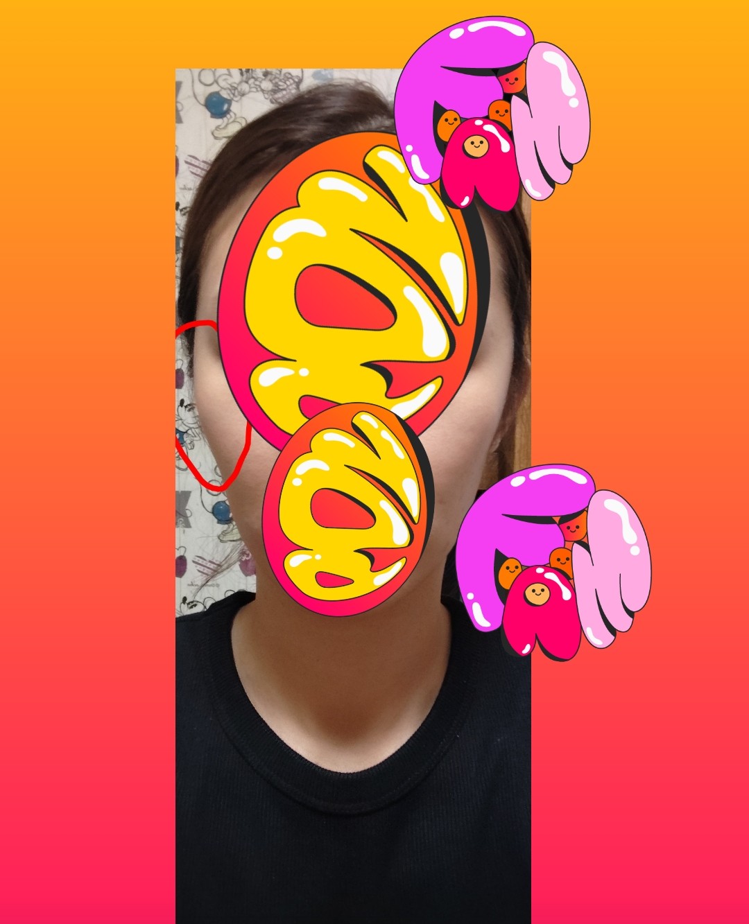 こめかみから頬に欠けて腫れていて、圧迫感があります。