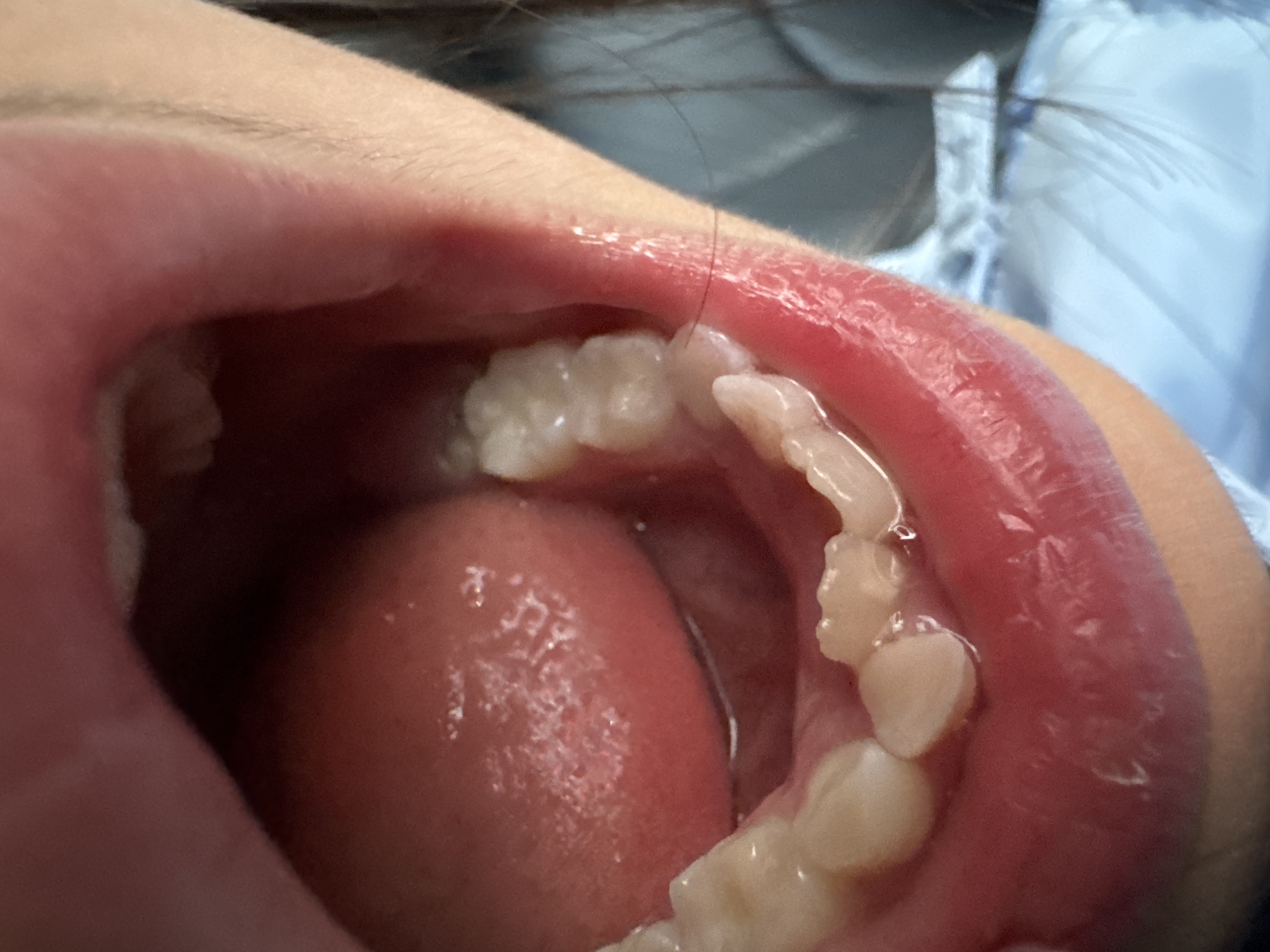 ぶつけてしまいぐらつく前歯を固定した後から口を閉じられなくなりました。