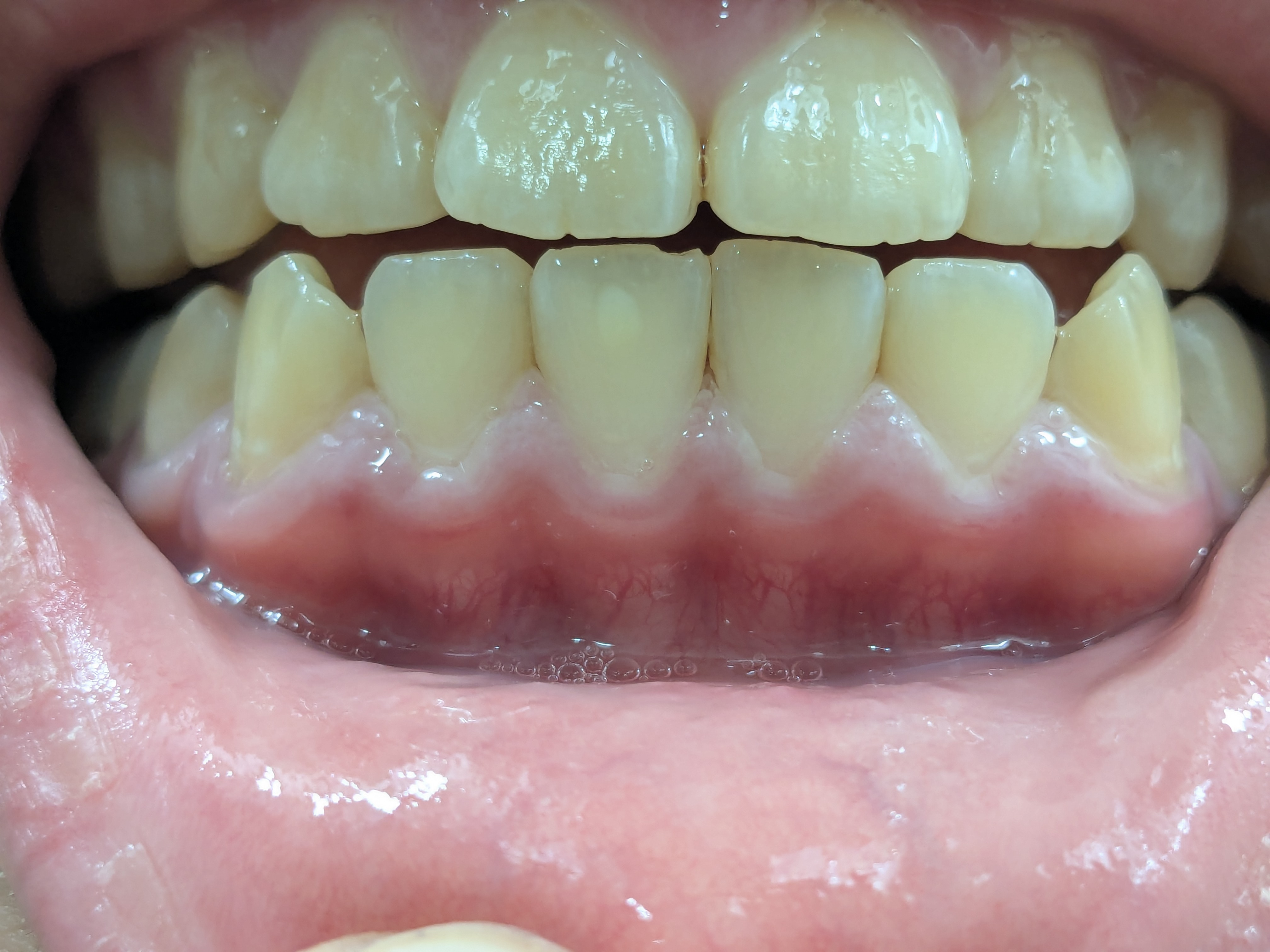 歯肉炎を治療していますが、歯茎が白く爛れています。