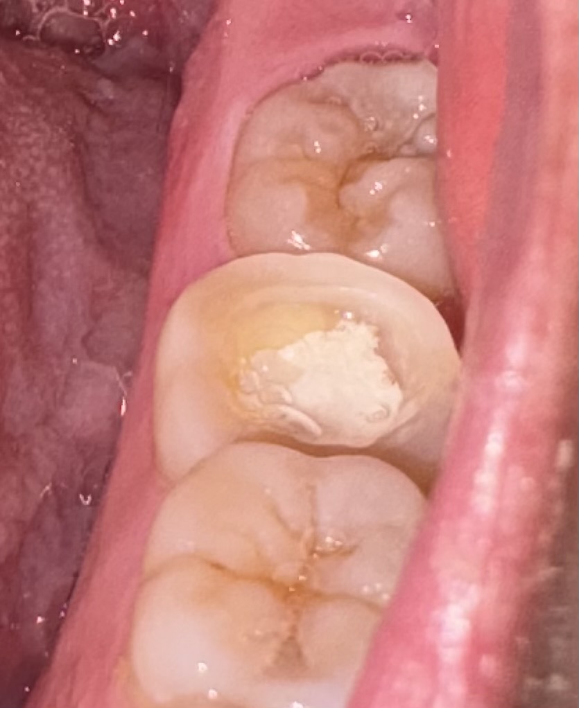 虫歯を削った後に詰めた薬がへこんでしまいました。