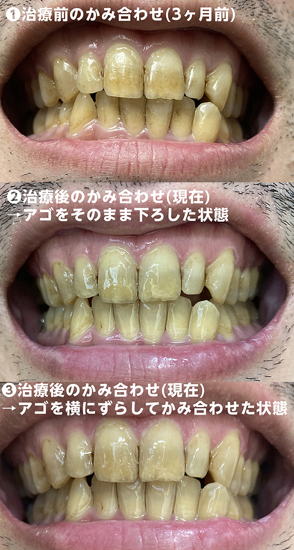 下顎を動かして口を閉じると噛み合う状態になっています。(※1枚目の写真参照)