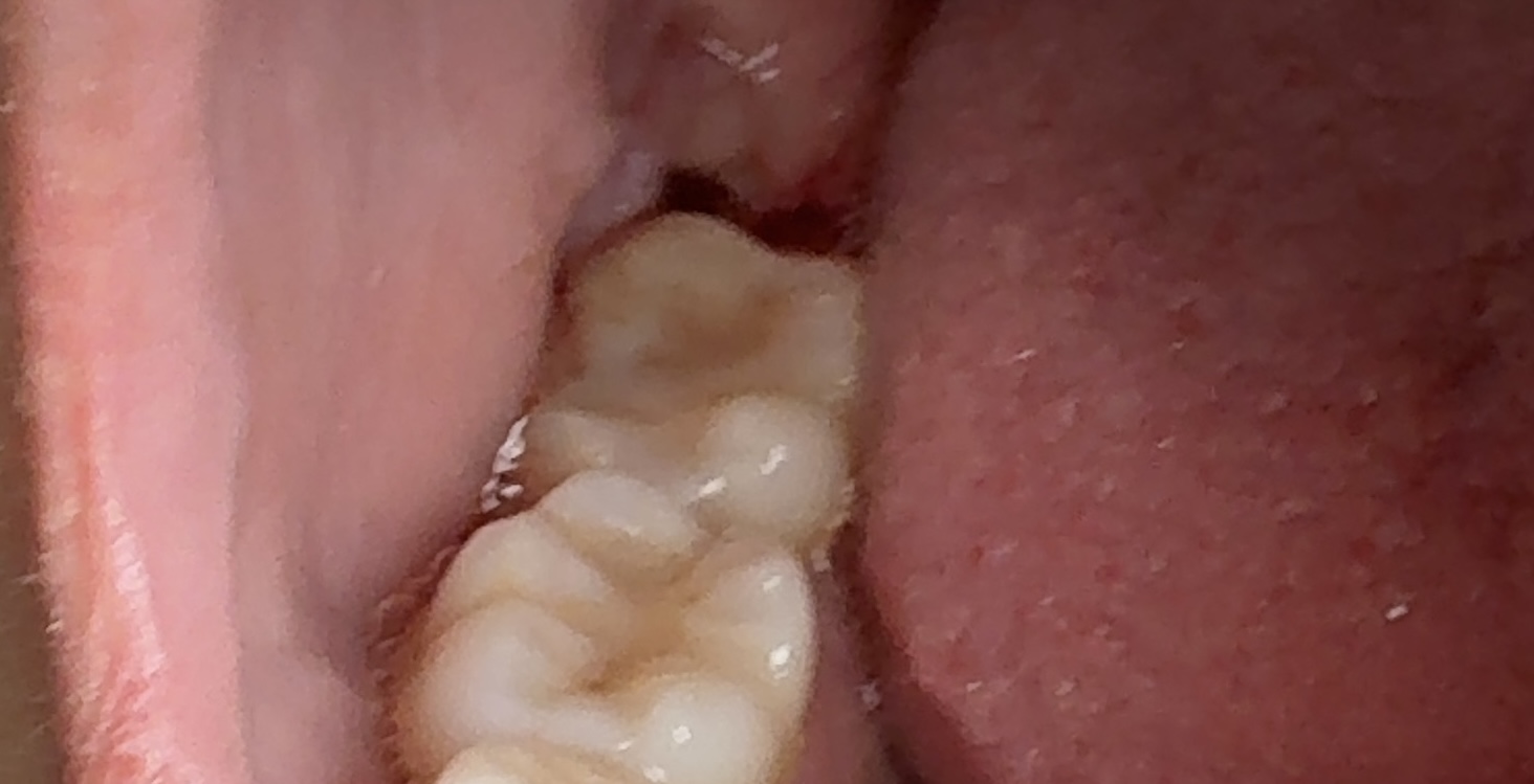 生えかけの親知らずの歯茎が腫れて出血しています。