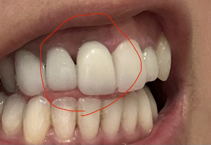 歯肉が空いてきており、前歯なので