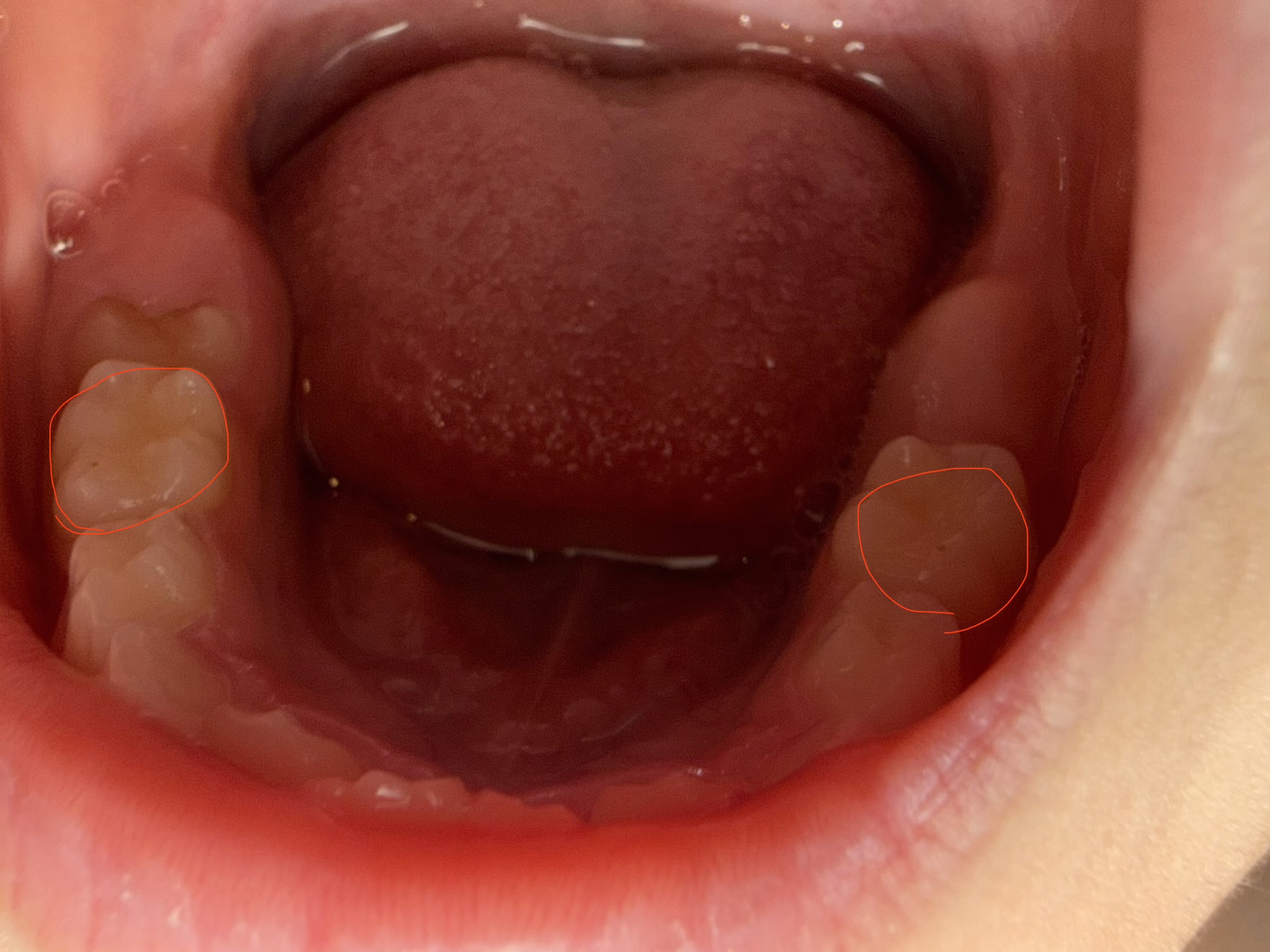 子供の奥歯に茶色い汚れがあります。虫歯でしょうか?