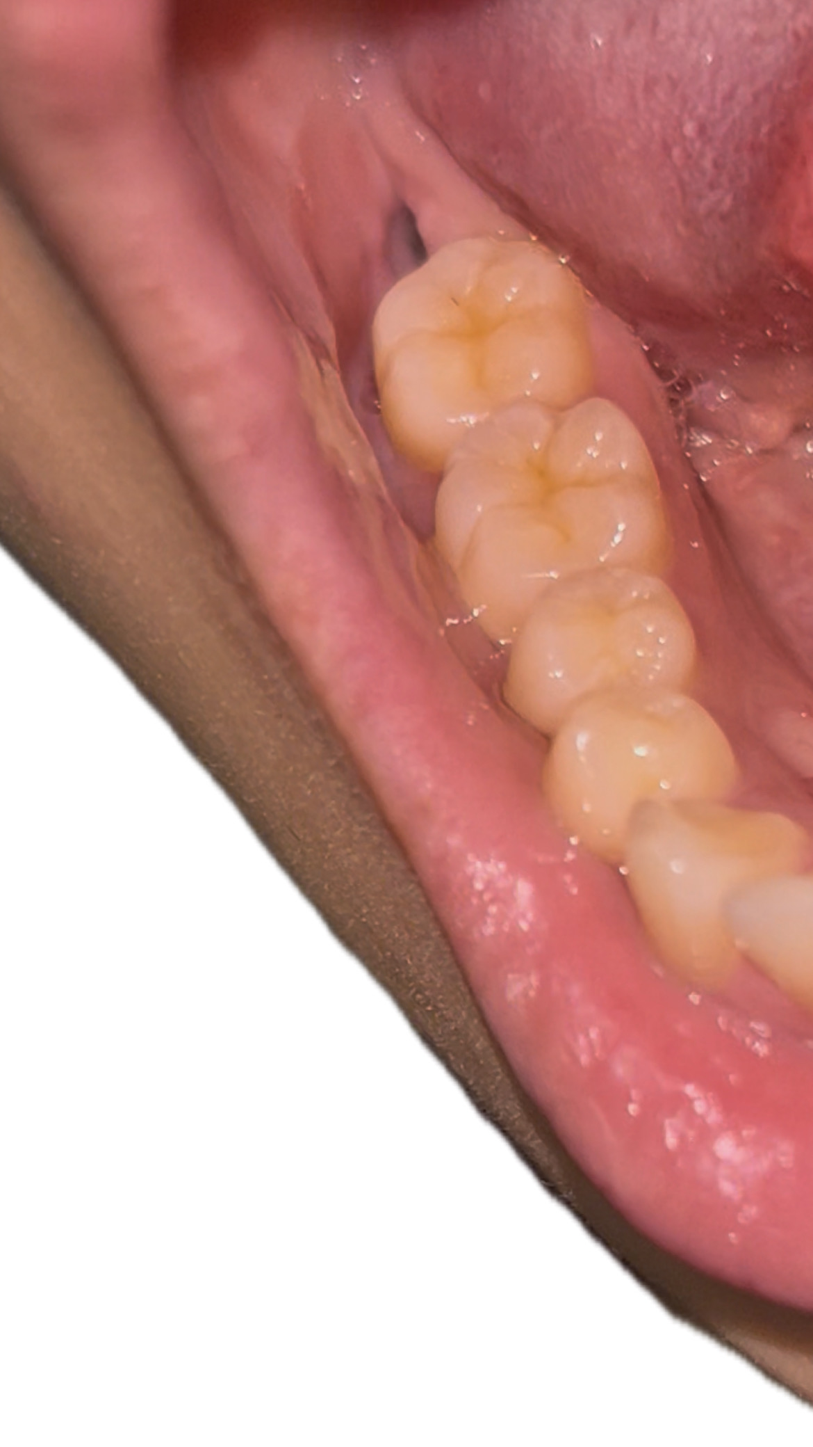 虫歯の抜歯後、腫れが治まらず、歯茎に白いものが広がっています。