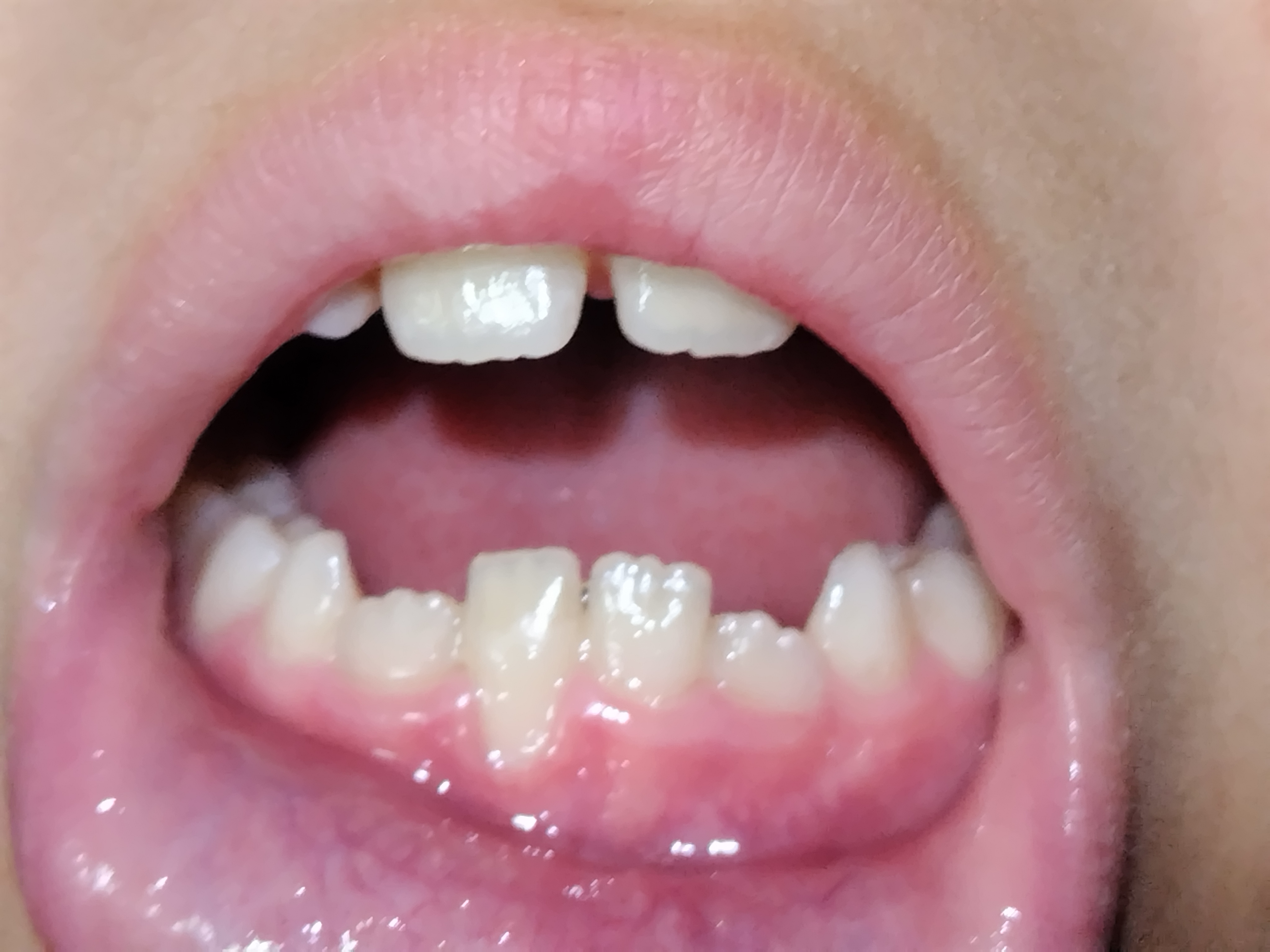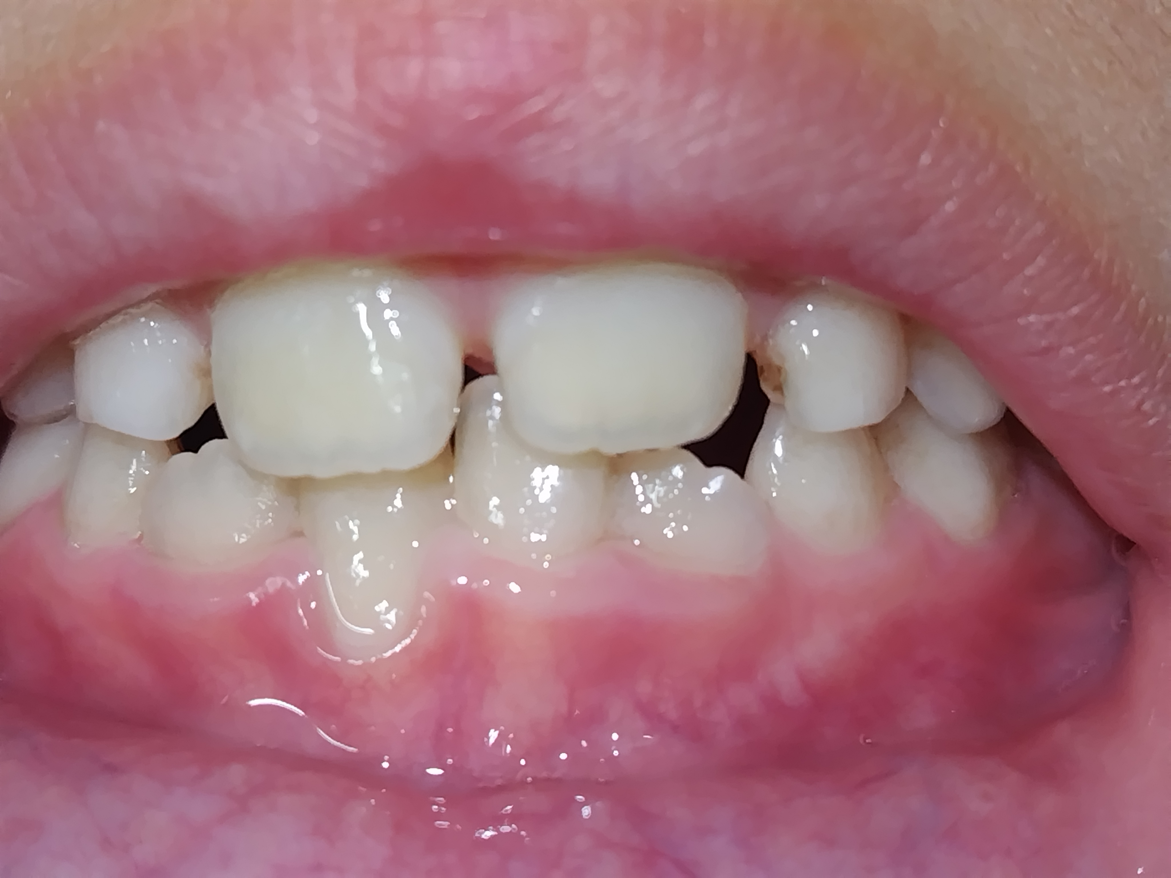 現在、前歯の上下2本は永久歯に変わっています。