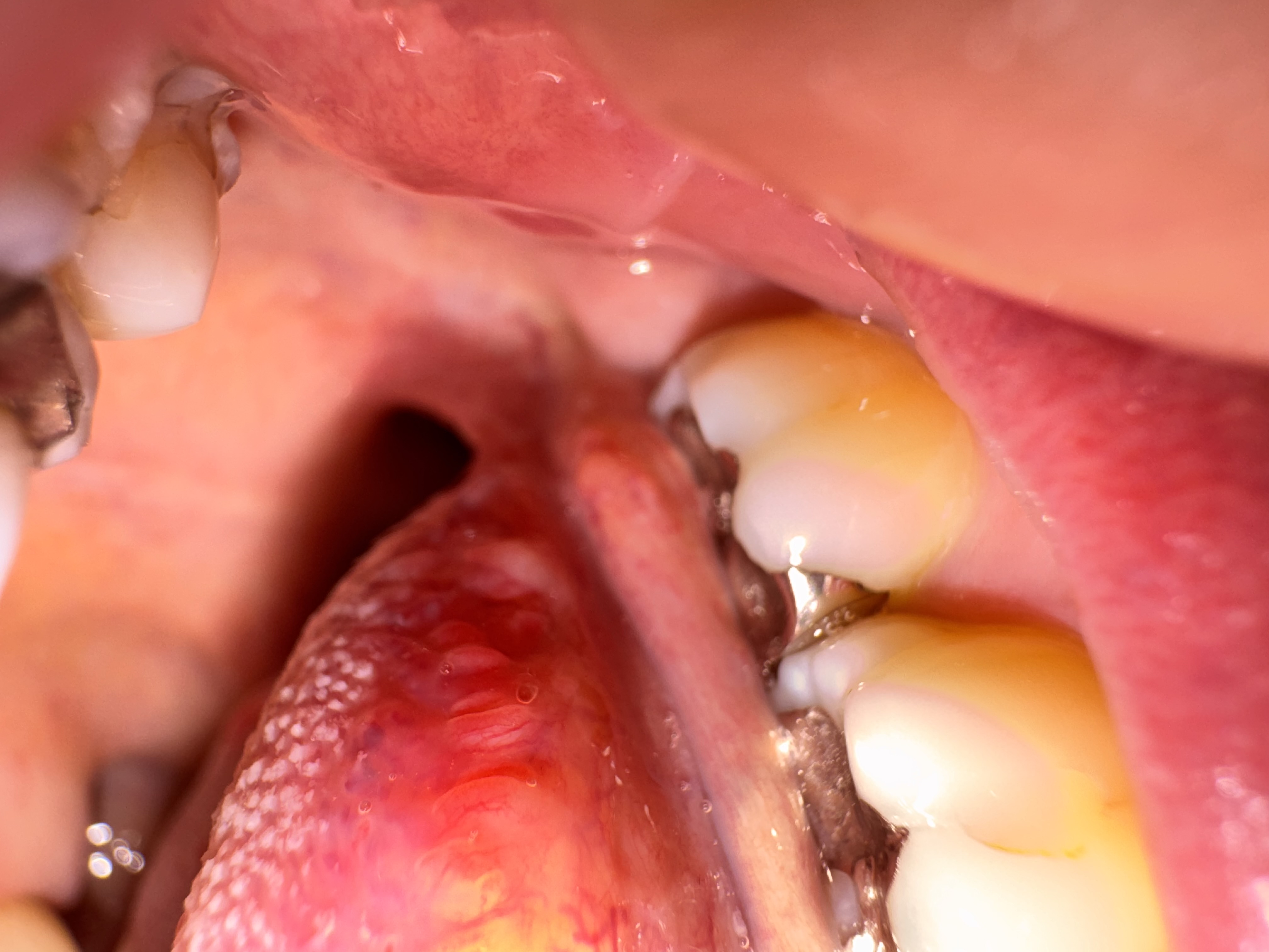 舌の裏側に違和感があり、リンパ腺の腫れとしこりのようなものがあります。