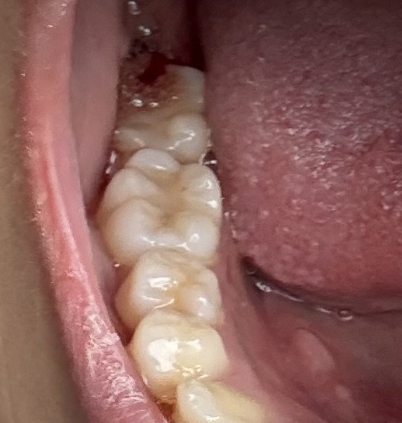 生えかけの親知らずの歯茎が腫れて出血しています。