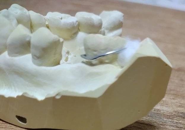 部分入れ歯の金具に隙間を空けて7番の
