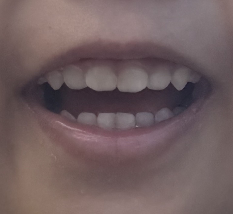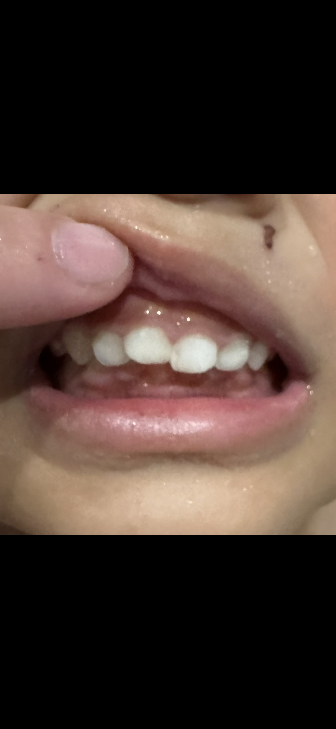 子供の前歯の根元が白くなっています。骨でしょうか?