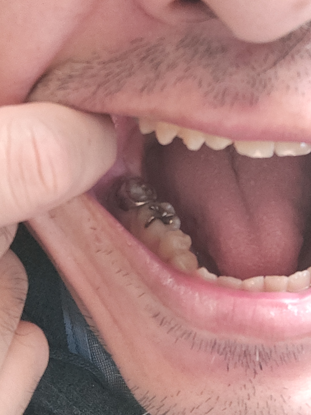 恐らく、奥歯で食べ物を噛んで裂けたのかもしれません。